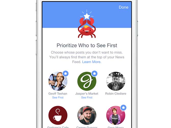 ៧)ជ្រើសយក Profile របស់មិត្តភក្ដិឬក៏ទំព័រណាមួយ(Page) ជាអទិភាពក្នុងការបង្ហាញ៖ មុខងារនេះនឹងបង្ហាញលោកអ្នកមុនគេនៅពេលដែល Profile ឬ ទំព័រដែលលោកអ្នកបានជ្រើសរើស។ ចូលទៅកាន់ More → Settings → News Feed Preferences → Prioritize who to see first រួចធ្វើការជ្រើសរើស។