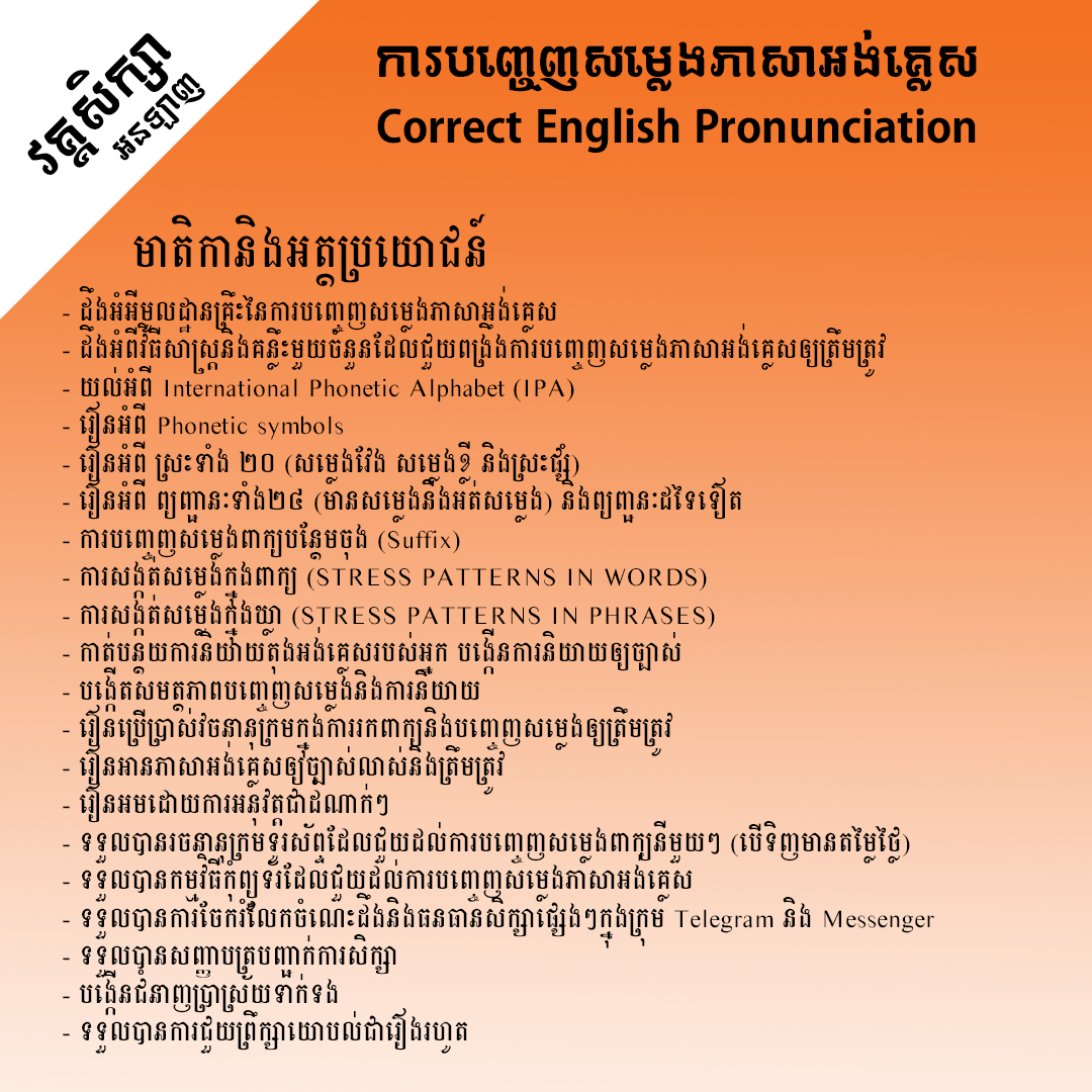 វគ្គសិក្សា «ការបញ្ចេញសម្លេងភាសាអង់គ្លេស» (Correct English Pronunciation Course)