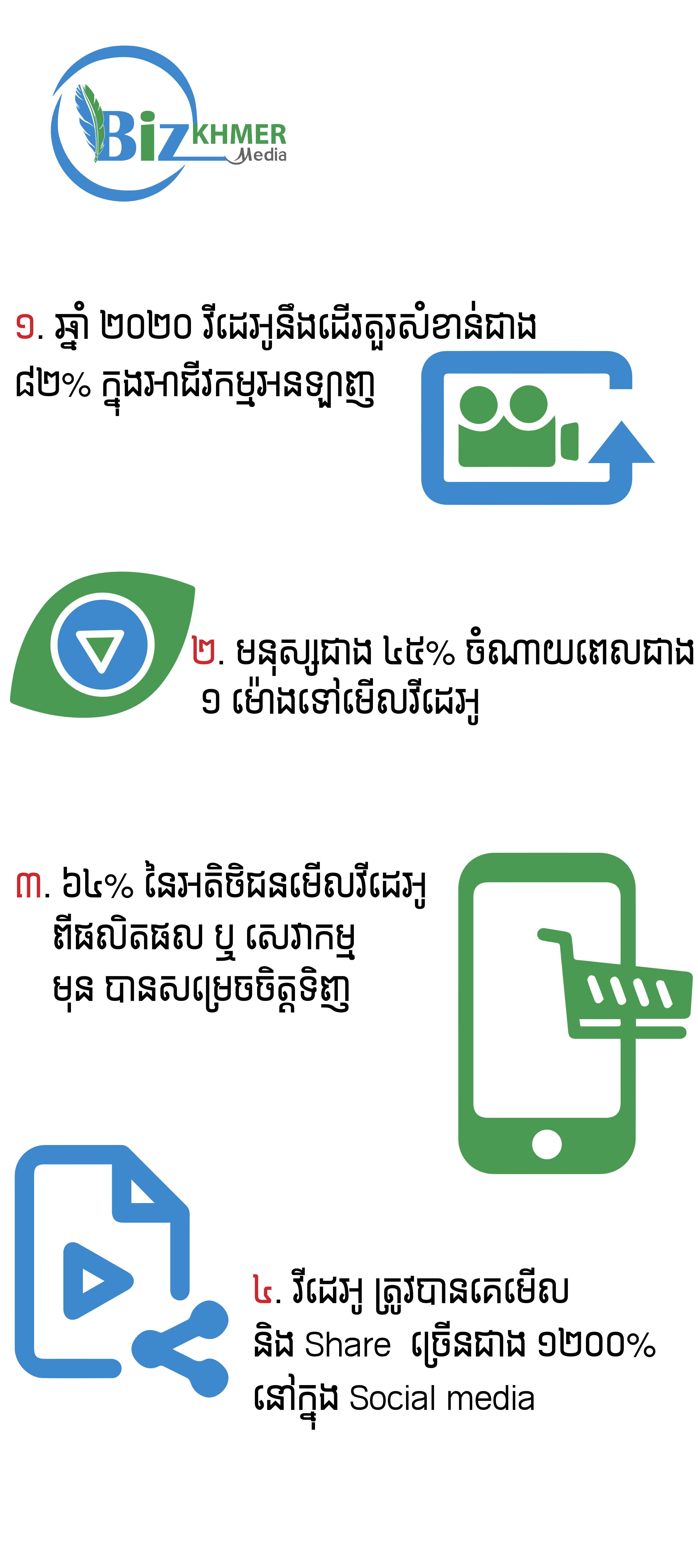 អាជីវកម្មទាំងឡាយមិនថា តូច-ធំ ក្នុងពេលបច្ចុប្បន្ននេះដើម្បីចង់ឲ្យអាជីវកម្មឆាប់ត្រូវបានគេស្គាល់ច្រើនត្រូវមានវីដេអូមួយដែល បរិយាយពីអាជីវកម្មខ្លួនទោះបីជា វែង ឬខ្លីក៏ដោយ។ ព្រោះបើយើងប្រមាណ មើលមកពេលបច្ចុប្បន្នរហូតដល់អនាគតមនុស្សចាប់ផ្ដើមខ្ជិលអានកាន់តែច្រើនឡើង។ ពួកគេភាគច្រើនមើល នឹង ស្ដាប់ជាងការអាន។ ដូចនេះហើយទើប Bizkhmer លើកយកអត្ថបទនេះមកដកស្រង់ចែករំលែកចំណេះដឹងដល់អ្នកអាន។