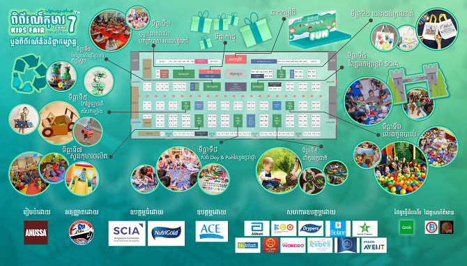 ក្រោមប្រធានបទ “កុមារនិងបរិស្ថាន” ក្នុងពិព័រណ៍កុមារនិងគ្រួសារលើកទី៧ ក្រុមហ៊ុនអនុស្សានឹងរៀបចំទីធ្លាកម្សាន្ដចំនួន៩ធំៗ សម្រាប់ក្រុមគ្រួសាររីករាយកម្សាន្ដនាថ្ងៃចុងសប្ដាហ៍នេះ ក្រៅពីការដើរទិញទំនិញបញ្ចុះតម្លៃ ស្វែងរកសាលារៀនល្អៗសម្រាប់កូន និងនាំពួកគេឡើងប្រកួតលើឆាកដើម្បីបង្ហាញសមត្ថភាព និងបង្កើនភាពក្លាហាន។
