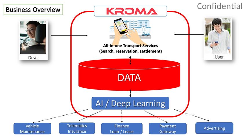 យុទ្ធសាស្រ្តរកចំណូលរបស់ KROMA គឺមិនពឹងផ្អែកតែលើកម្រៃជើងសារបានពីដៃគូបើកបរឡើយ ប៉ុន្តែបង្កើតប្រភពចំណូលផ្សេងៗទៀត ដូចបង្ហាញក្នុង Business Overview ខាងក្រោម។ កម្រៃជើងសារដែលជាបន្ទុកដៃគូបើកបរនឹងត្រូវបន្ទាបឲ្យទាបបំផុតតាមតែអាចរហូតដល់សូន្យ ឬក្រោមសូន្យទៅទៀតដើម្បីសម្រួលនិងជាការលើកទឹកចិត្ត។ KROMA ចាត់ទុកថា អ្នកបើកបរជាដៃគូអាជីវកម្ម (PARTNER) ដ៏សំខាន់បំផុតព្រោះថាជាការពិតណាស់ បើគ្មានពួកគាត់ក៏ក្រុមហ៊ុនAPPទំាងអស់ មិនអាចប្រតិបត្តិការទៅមុខបានដែរ។ ដូច្នេះហើយបានជាឈ្មោះ APPសំរាប់អ្នកបើកបរក្រមា ត្រូវបានដាក់ថា KROMA PARTNER។