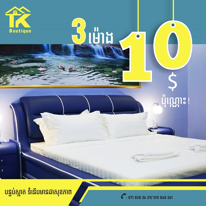 ទទួលយកការសម្រាកលំហែរយៈពេលខ្លី ជាមួយបរិយាកាសស្រស់ស្រាយនៅ TK Boutique៕