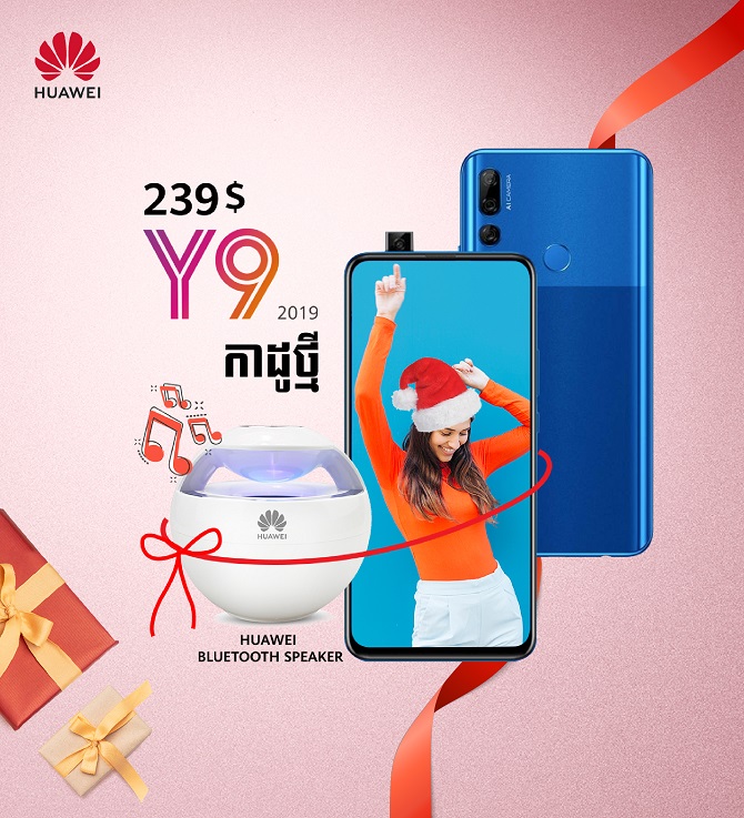 ៣. Huawei Y9 តម្លៃ 239$ ផ្ដល់ជូនកាដូបន្ថែមកាន់តែអស្ចារ្យគឺ Bluetooth Speaker យ៉ាងស្រស់ស្អាត