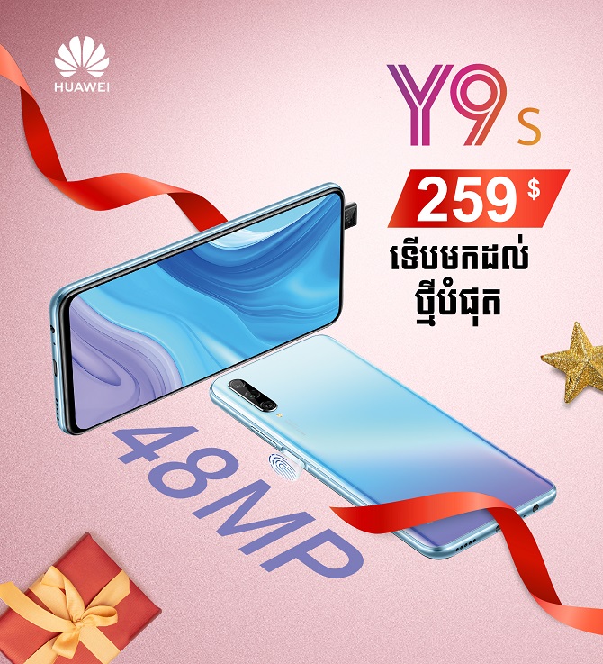 ក្រុមហ៊ុនស្មាតហ្វូនលំដាប់លេខ២លើពិភពលោកបានបញ្ចេញស្មាតហ្វូនថ្មីរបស់ខ្លួនមកកាន់ទីផ្សារកម្ពុជាគឺ Huawei Y9s តម្លៃ 259USD មិនត្រឹមតែប៉ុណ្ណោះ Huawei ក៏បានផ្ដល់ជូនប្រូម៉ូសិនពិសេសមិនធ្លាប់មានពីមុនមកផងដែរ។