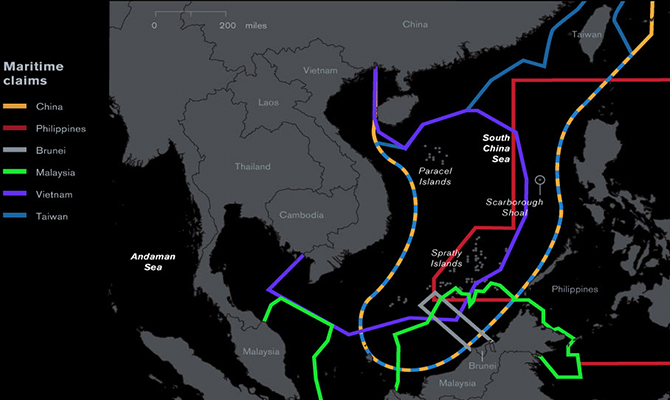 ជម្លោះសមុទ្រចិនខាងត្បូងគឺជាបញ្ហាចម្រូងចម្រាស់ដ៏ក្តៅគគុកបំផុតមួយនៃភូមិសាស្រ្តនយោបាយ និងសេដ្ឋកិច្ចក្នុងតំបន់ក៏ដូចជានៅក្នុងពិភពលោកផងដែរ។ ចិន ហ្វីលីពីន វៀតណាម ម៉ាឡេស៊ី ប្រ៊ុយណេ តៃវ៉ាន់ និងឥណ្ឌូណេស៊ីសុទ្ធតែបានអះអាង និងចង់ក្រសោបយកចំណែកមួយភាគធំនៃដែនសមុទ្រនេះរៀងៗខ្លួនដែលជាហេតុធ្វើឲ្យជម្លោះមួយនេះបន្តកើតមានរហូតមកដល់សព្វថ្ងៃ។