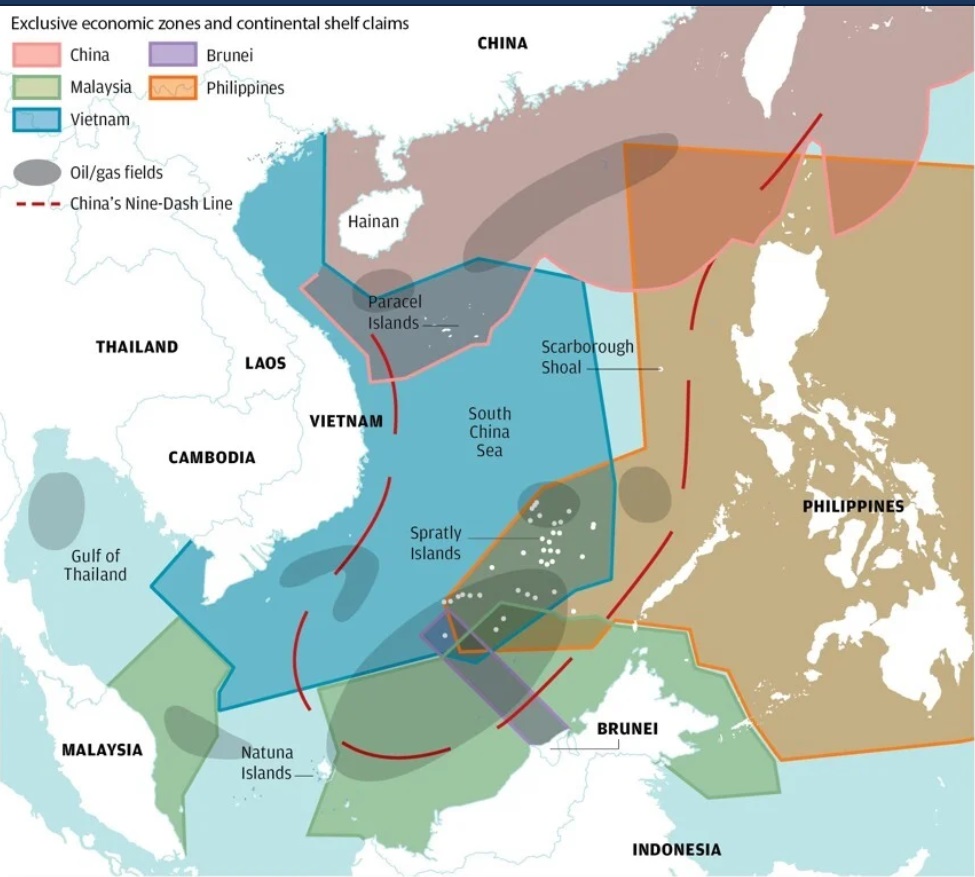 គូសបញ្ជាក់ថា ជម្លោះសមុទ្រចិនខាងត្បូង គឺជាបញ្ហាចម្រូងចម្រាស់ដ៏ក្តៅគគុកបំផុតមួយនៃភូមិសាស្រ្តនយោបាយ និងសេដ្ឋកិច្ចក្នុងតំបន់អាស៊ីអាគ្នេហ៍។ ចិន ហ្វីលីពីន វៀតណាម ម៉ាឡេស៊ី ប្រ៊ុយណេ តៃវ៉ាន់ និងឥណ្ឌូណេស៊ី សុទ្ធតែបានអះអាង និងចង់ក្រសោបយកចំណែកមួយភាគធំនៃដែនសមុទ្រនេះរៀងៗខ្លួនដែលជាហេតុធ្វើឲ្យជម្លោះមួយនេះបន្តកើតមានរហូតមកដល់សព្វថ្ងៃ។