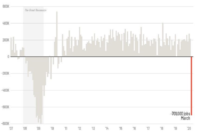 ការងារ ៧០ម៉ឺននៅអាមេរិកត្រូវបាត់បង់នៅខែមីនាជារឿងអាក្រក់បំផុតចាប់តាំងពីវិបត្តិសេដ្ឋកិច្ច២០០៩