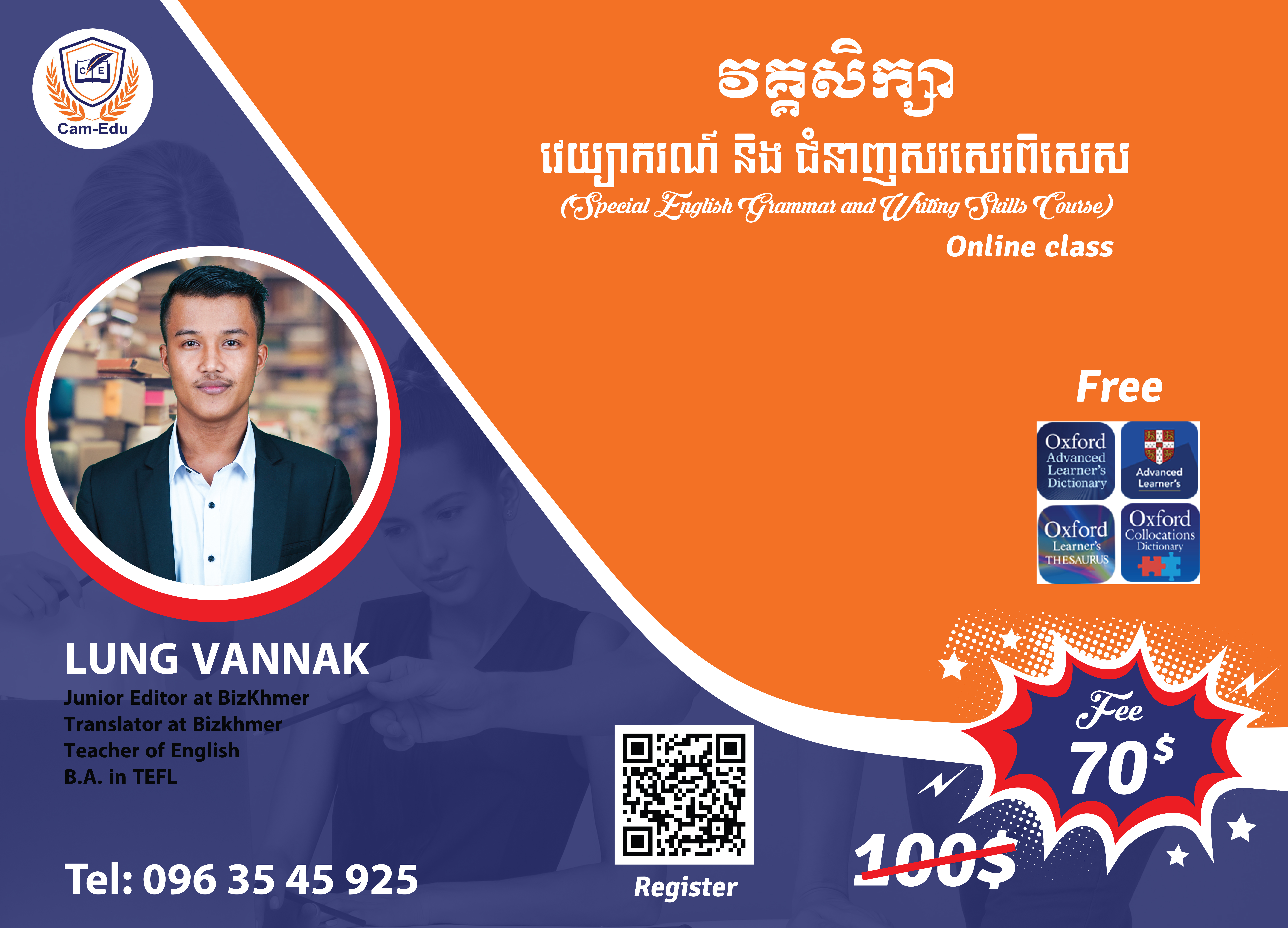 - តម្លៃ 70$ សម្រាប់អ្នកចុះឈ្មោះមុនថ្ងៃទី ២៥
