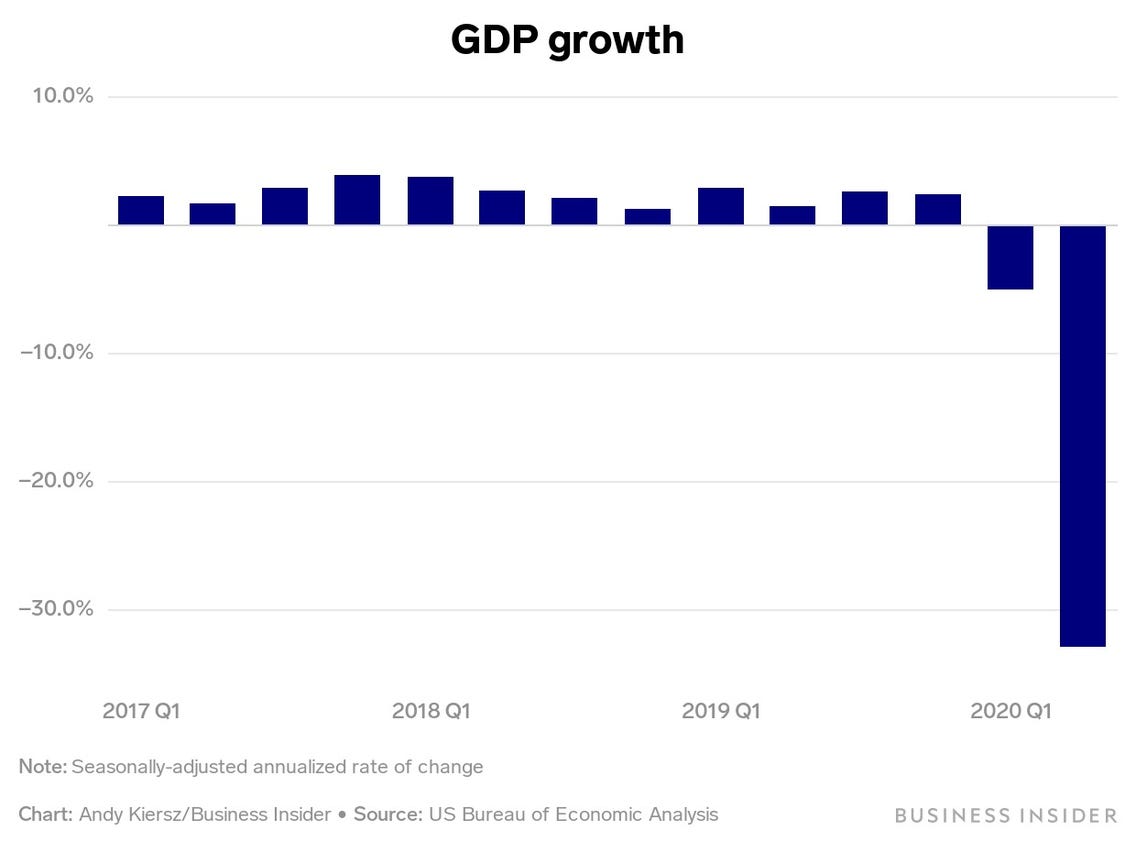 ព័ត៌មានផ្លូវការបានបញ្ចេញហើយ! វិបត្តិជំងឺ Covid-19 បានធ្វើឲ្យ GDP របស់អាមេរិកធ្លាក់ចុះនៅក្នុងអត្រាមួយខ្ពស់បំផុតមិនធ្លាប់មាននៅក្នុងប្រវត្តិសាស្ត្រ។ ផលិតផលក្នុងស្រុកសរុបរបស់មហាអំណាចមួយនេះបានធ្លាក់ចុះរហូតដល់ទៅ ៣៣% សម្រាប់ឆមាសទី២ ឆ្នាំ ២០២០ នេះ។ នេះបើយោងតាមរបាយការណ៍ចេញផ្សាយរបស់ក្រសួងពាណិជ្ជកម្មរបស់ខ្លួនកាលពីថ្ងៃព្រហស្បតិ៍ម្សិលមិញ។