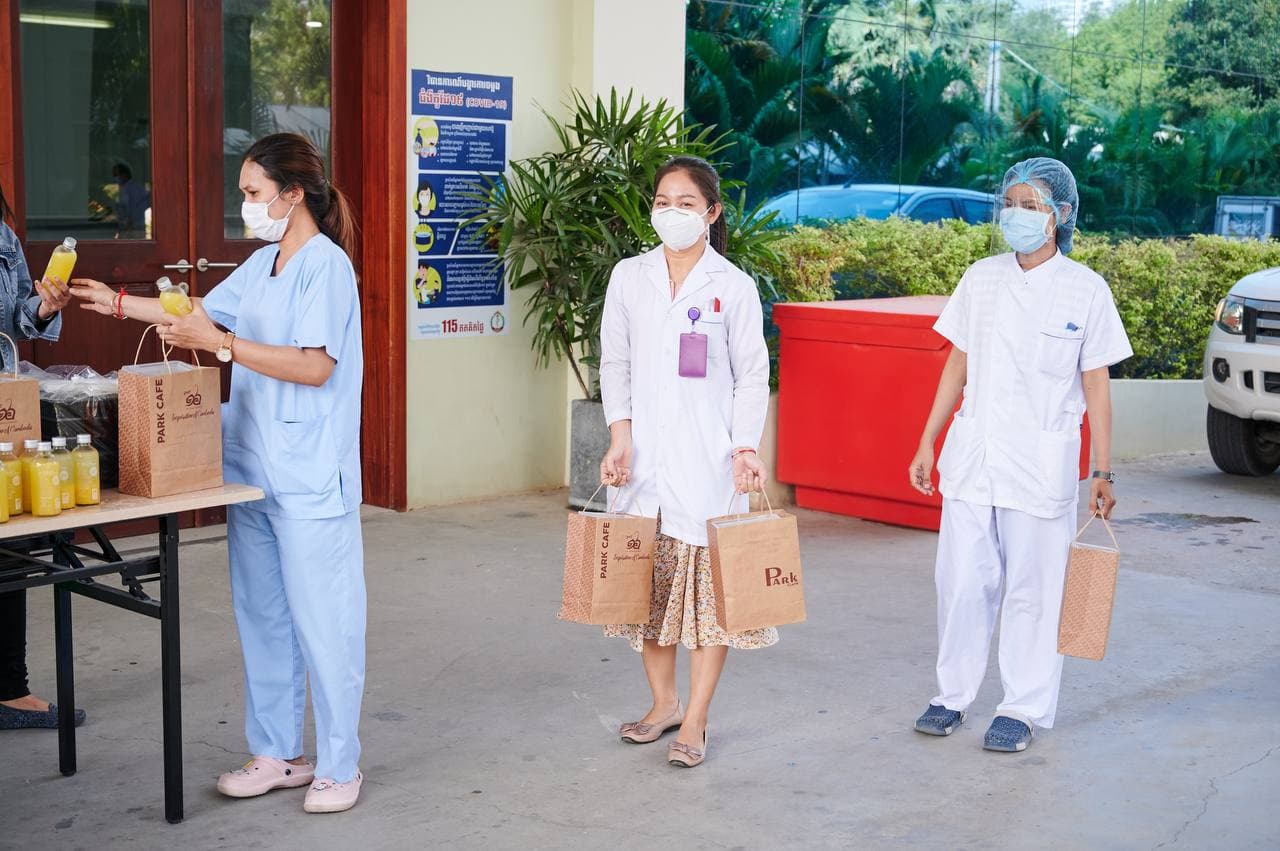 ដើម្បីចូលរួមលើកទឹកចិត្តនិងតមស្នងដល់ការខិតខំរបស់ក្រុមការងារជួរមុខដែលបានកំពុងជាប់ដៃប្រយុទ្ធនឹងជំងឺ Covid-19 ភោជនីយដ្ឋានផាកកាហ្វេ បានបង្កើតយុទ្ធនាការឧបត្ថម្ភ អាហារ ភេស្ជជៈនិងទឹកក្រូចពោធ៌ិសាត់ស្រស់ប្រមាណ 5300ឈុត សម្រាប់រយៈពេល14ថ្ងៃ ដែលចាប់ផ្តើមពីថ្ងៃទី 18 រហូតដល់ ទី31 មិនា 2021 នេះសម្រាប់គោលដៅធំៗ 2កន្លែង គឺមាន៖ មណ្ឌលចត្តាឡីស័ក្ត Great Duke និង មន្ទីរពេទ្យមិត្តភាពខ្មែរ សូរៀតជូនដល់គ្រូពេទ្យ បុគ្គលិកសុខាភិបាល និងកងកំលាំងប៉ូលីស ជួរមុខដែលមានចំនួនប្រមាណ៤០០នាក់ ដែលកំពុងឈរជើងការពារ ព្យាបាលនៅទីតាំងទាំង២ខាងលើ ដែលបានលៈបង់នូវពេលវេលាផ្ទាល់ខ្លួន នៅឆ្ងាយពីក្រុមគ្រួសារ តស៊ូការលំបាកនានាក្នុងកាលៈទេសៈនេះដើម្បីប្រយុទ្ធប្រឆាំងជំងឺ Covid-19។
