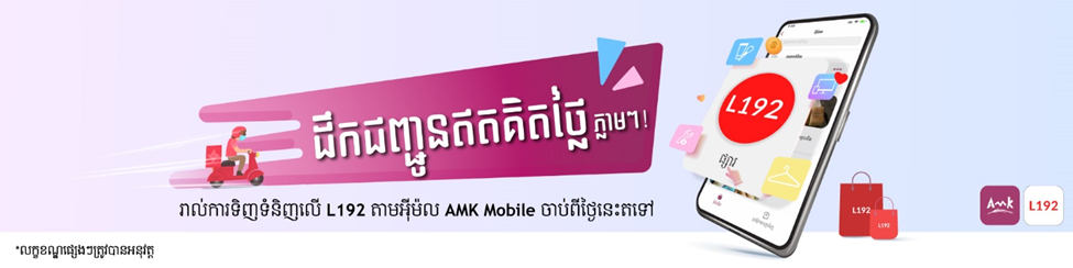 •សម្រាប់អតិថិជនដែលទិញទំនិញណាមួយនៅលើកម្មវិធី L192 ឬ AMK eMall ហើយទូទាត់តាមរយៈ AMK Mobile