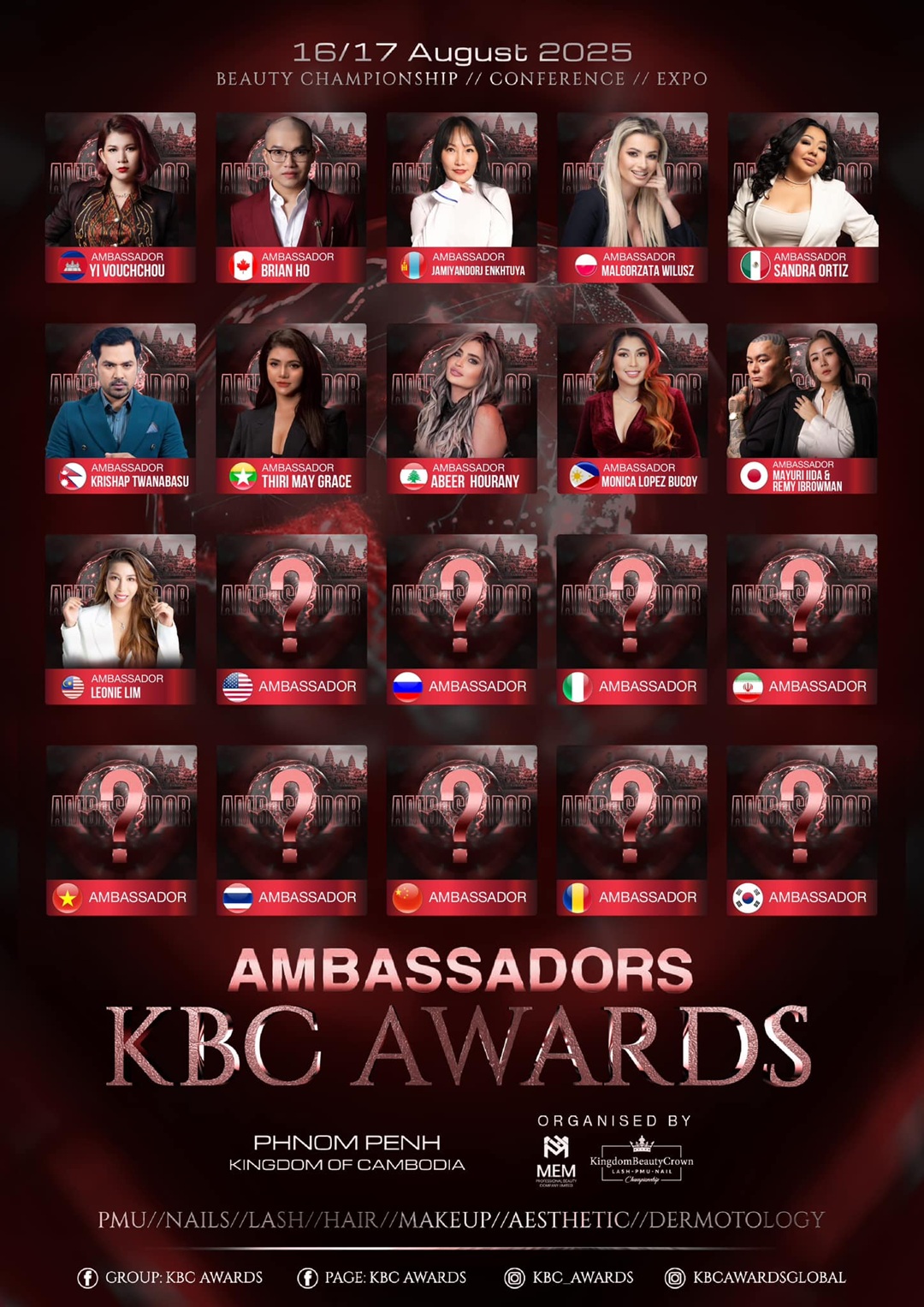 ព្រឹត្តិការណ៍នេះ គ្រោងនឹងទាក់ទាញអ្នកជំនាញមកវិស័យ សម្ផស្ស និងសម្រស់ ជាច្រើនរយនាក់ រួមមានអ្នកឯកទេស គណកម្មាធិការឆ្នើម និង បុគ្គលល្បីៗទាំងនៅកម្ពុជា និង មកពីជុំវិញពិភពលោក ចូលរួមក្នុងរយៈ ពេល ពីរថ្ងៃពេញ រួមមានទាំងការប្រកួតប្រជែង បញ្ចេញសមត្ថភាព ការសហការជាដៃគូ និង ពិធីអបអរសាទរដល់ជ័យលាភីដែលសម្រេចបាននូវសមិទ្ធផលអស្ចារ្យនិងលេចធ្លោ។